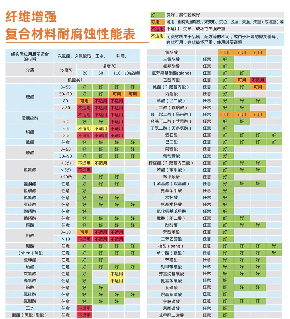經(jīng)過實(shí)驗(yàn)和生產(chǎn)中的實(shí)際應(yīng)用,高性能復(fù)合材料真空泵可以很好的適用于抽吸氯化氫、磷酸、鹽酸、甲苯、乙醇、二氧化硫、二氯甲烷、二氯乙烷、溴化氫等多種酸性腐蝕氣體和有機(jī)溶劑(詳見纖維復(fù)合材料耐腐蝕性能表)。